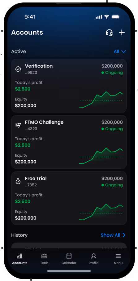 The FTMO Challenge puts your trading skills to the test. It is the first step towards an FTMO Account, giving you the chance to trade with simulated capital and earn real-money rewards without risking your own funds.